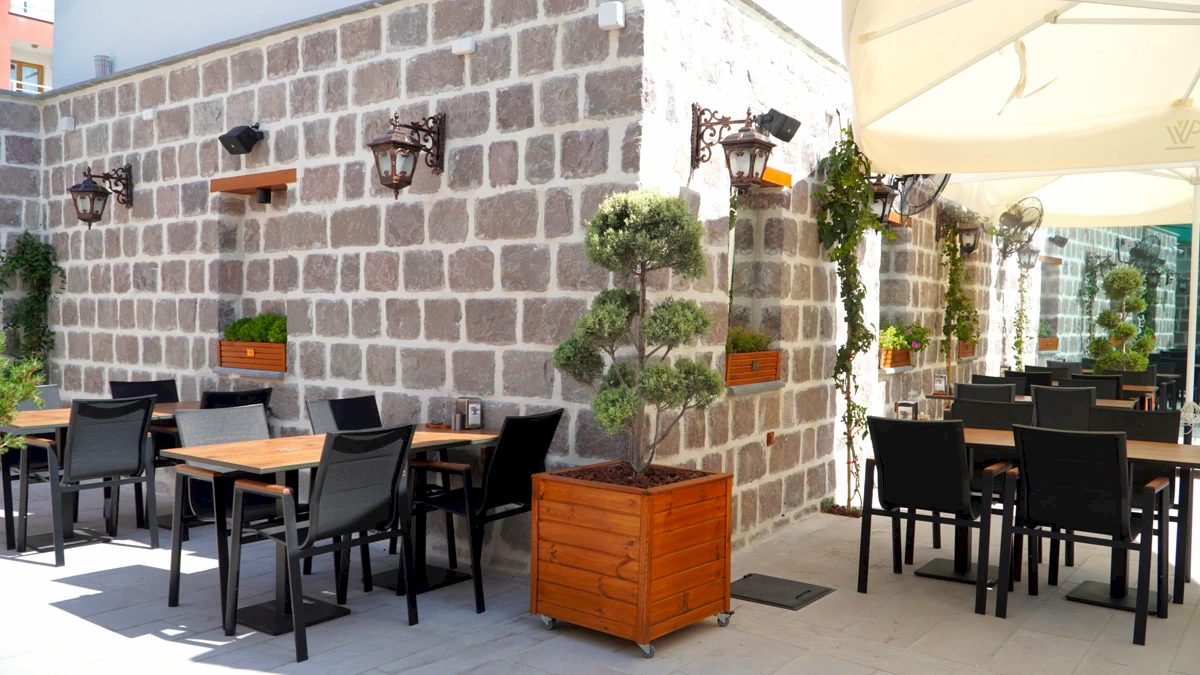 Vitalen Cafe'nin kahve ve tatlı alanı, zarif peyzaj çalışmalarıyla çevrili, ferah ve samimi bir mekân. Şık ve konforlu oturma alanlarıyla, kahvenizi ve tatlılarınızı keyifle tüketebileceğiniz rahat bir ortam sunuyor. Bahçesinin özenli detayları, burada geçirilen zamanı özel ve huzurlu kılıyor.